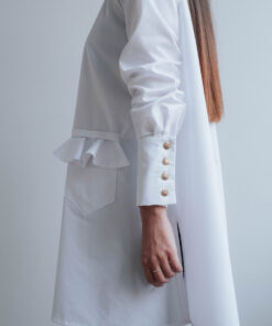 Camisa JC blanca con volantes en los bolsillos y botones joya dorados: