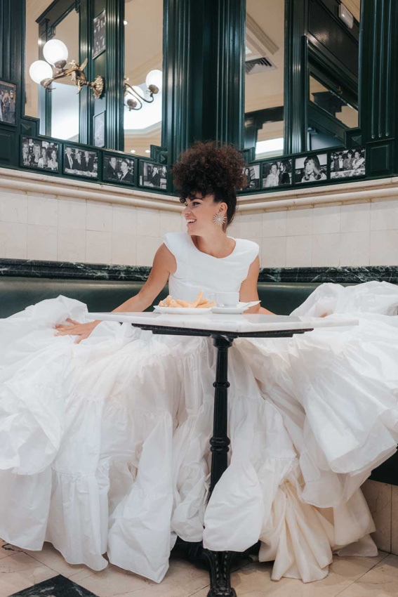 La diseñadora madrileña rinde homenaje a su ciudad natal en su primera colección nupcial. Catorce piezas con las que Johanna Calderón nos invita a sentir los rincones más emblemáticos de Madrid a través de sus diseños.