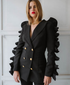 Blazer make-to-order cruzada con botonadura doble y volantes en las mangas: