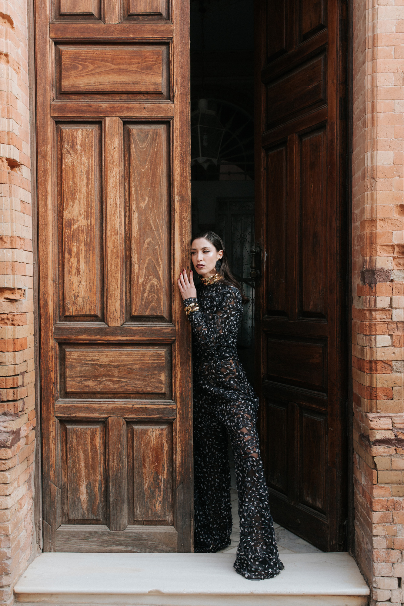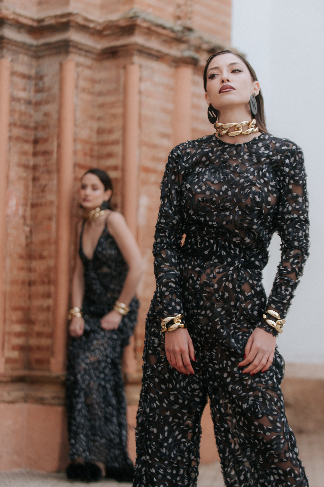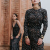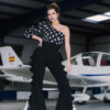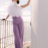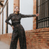 Pantalón tiro alto realizado en encaje tejido exclusivo. Posibilidad de hacerlo en otros tejidos. Color negro.