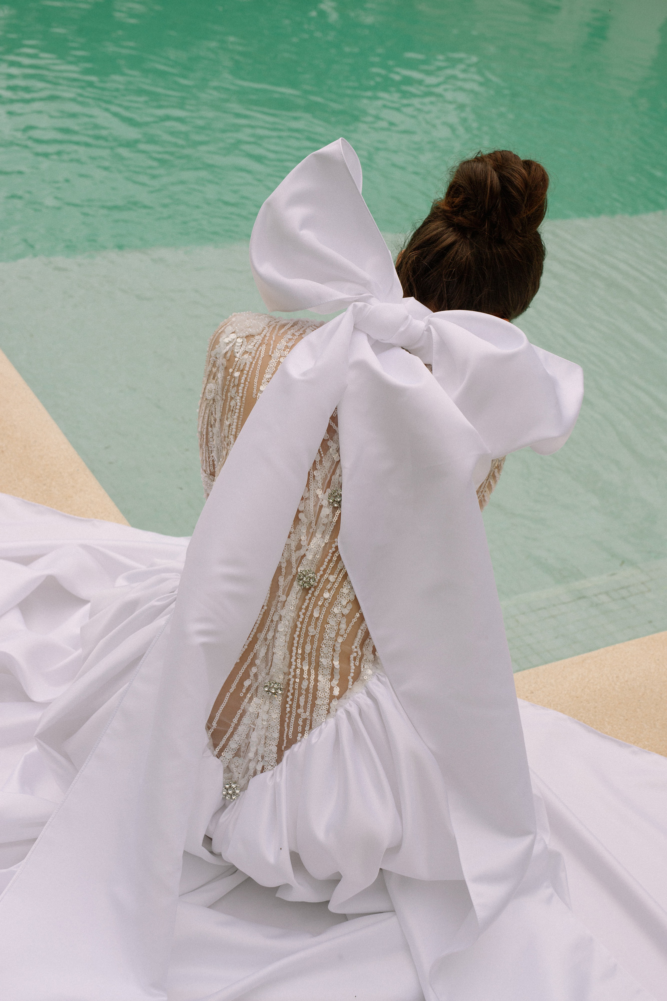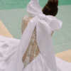 La pieza culmina en una explosión de volumen a través de una maxi falda, como símbolo del punto álgido de una revelación emocional.