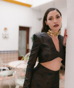 Vestido largo fiesta en tejido exclusivo.
