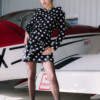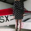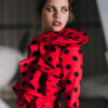Vestido realizado en crepe y volante por el cuerpo.